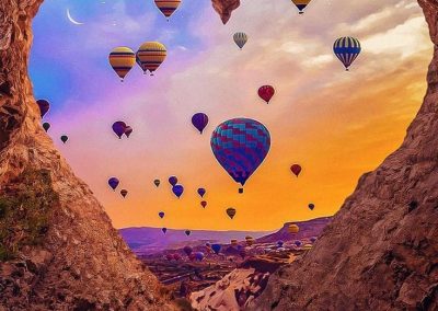 Sobrevuela los paisajes lunares de Capadocia en globo al amanecer, explora antiguas ciudades subterráneas, chimeneas de hadas y valles esculpidos por la naturaleza, mientras te sumerges en la tranquilidad y la historia única de esta región mágica.